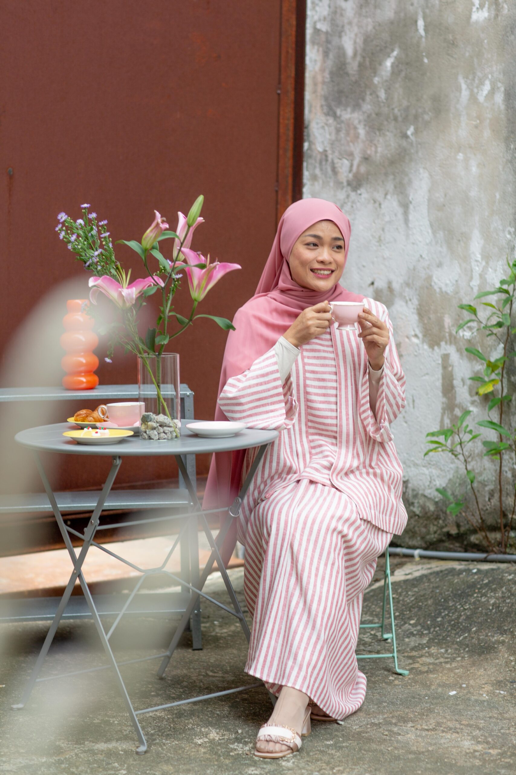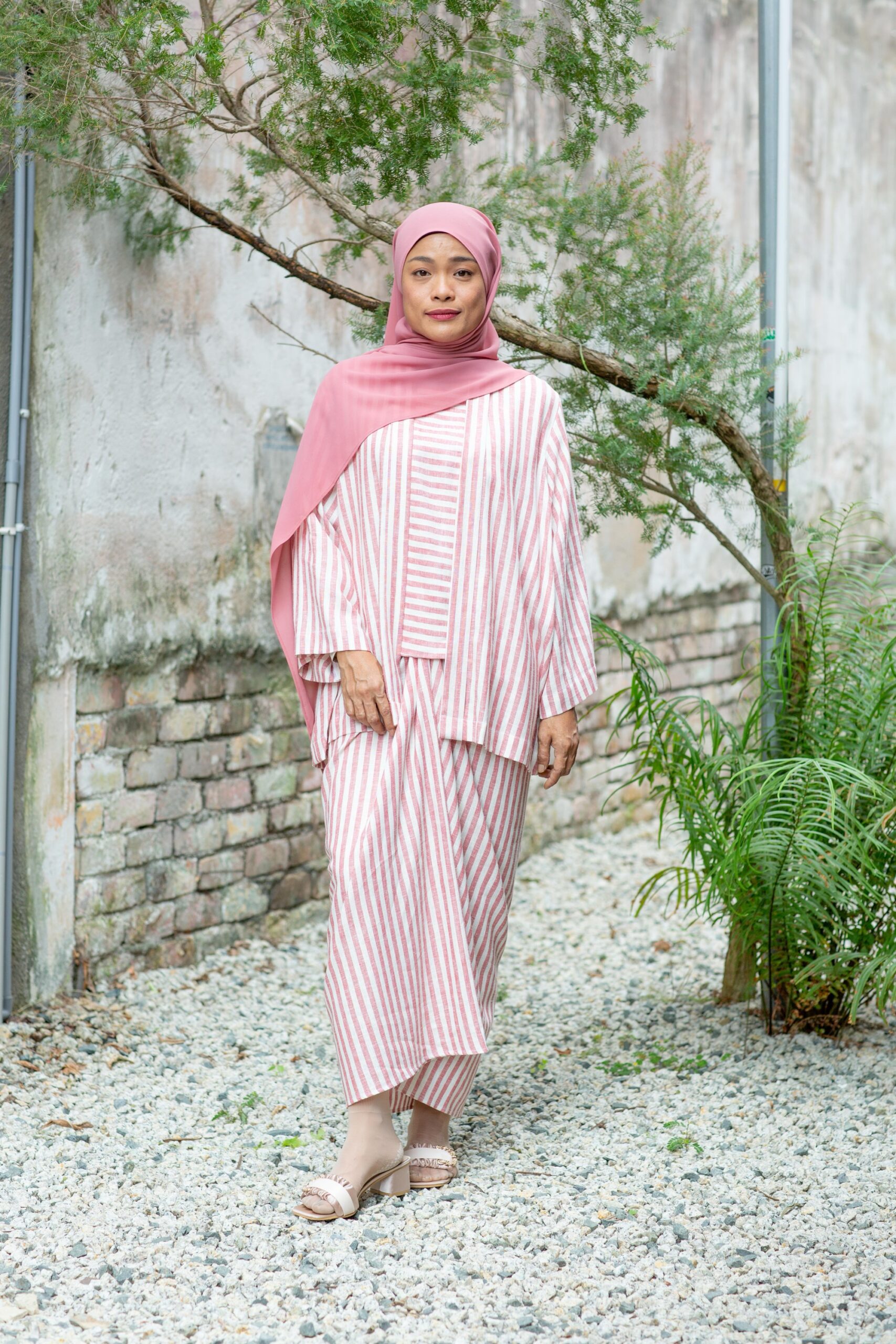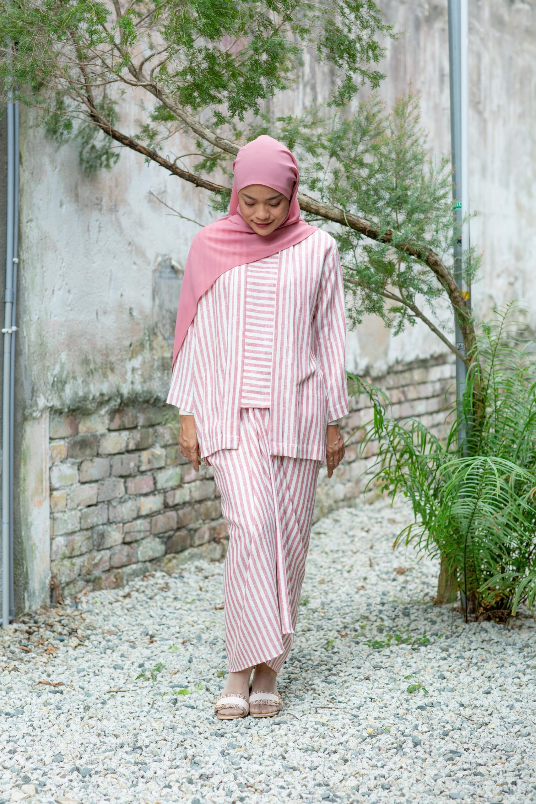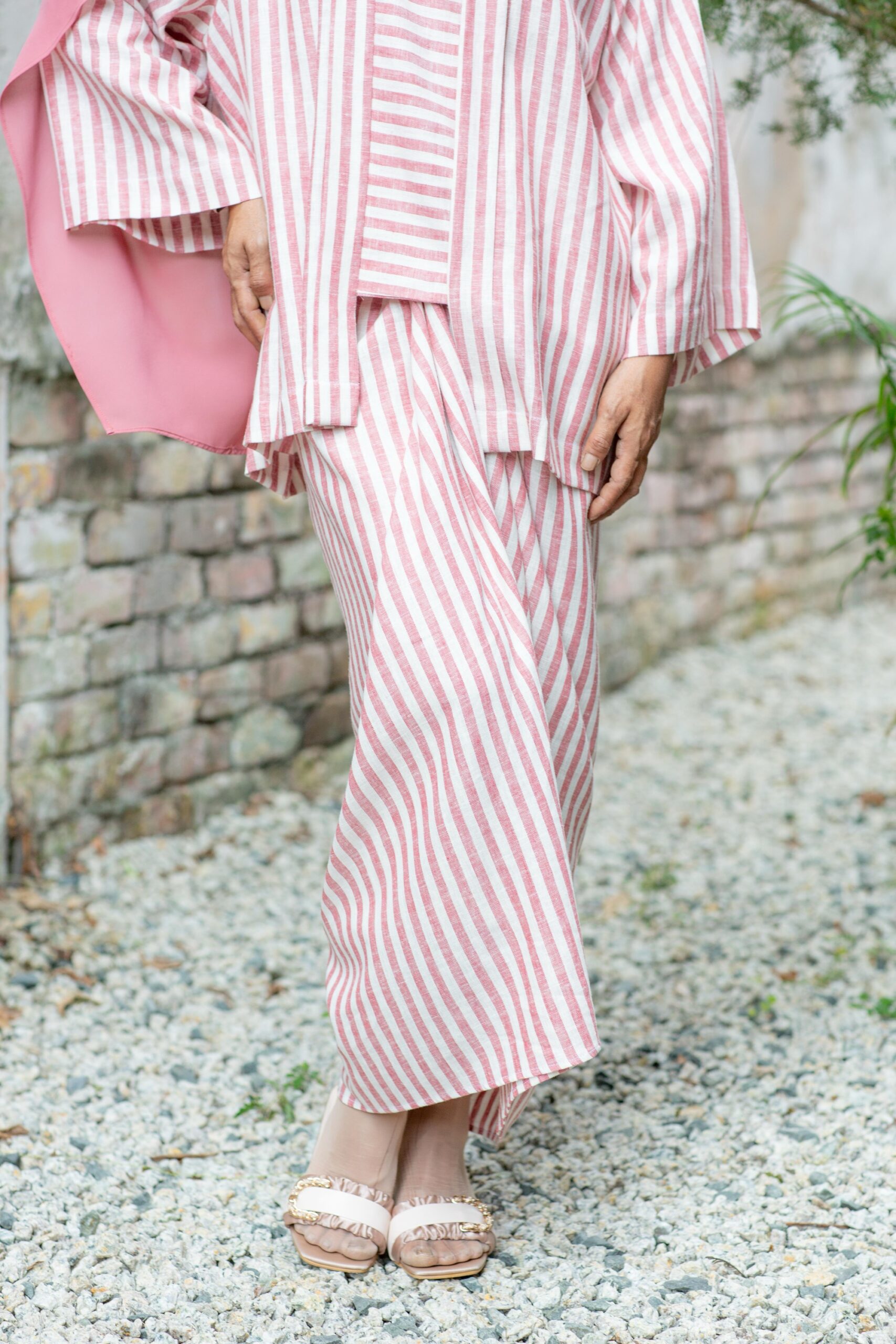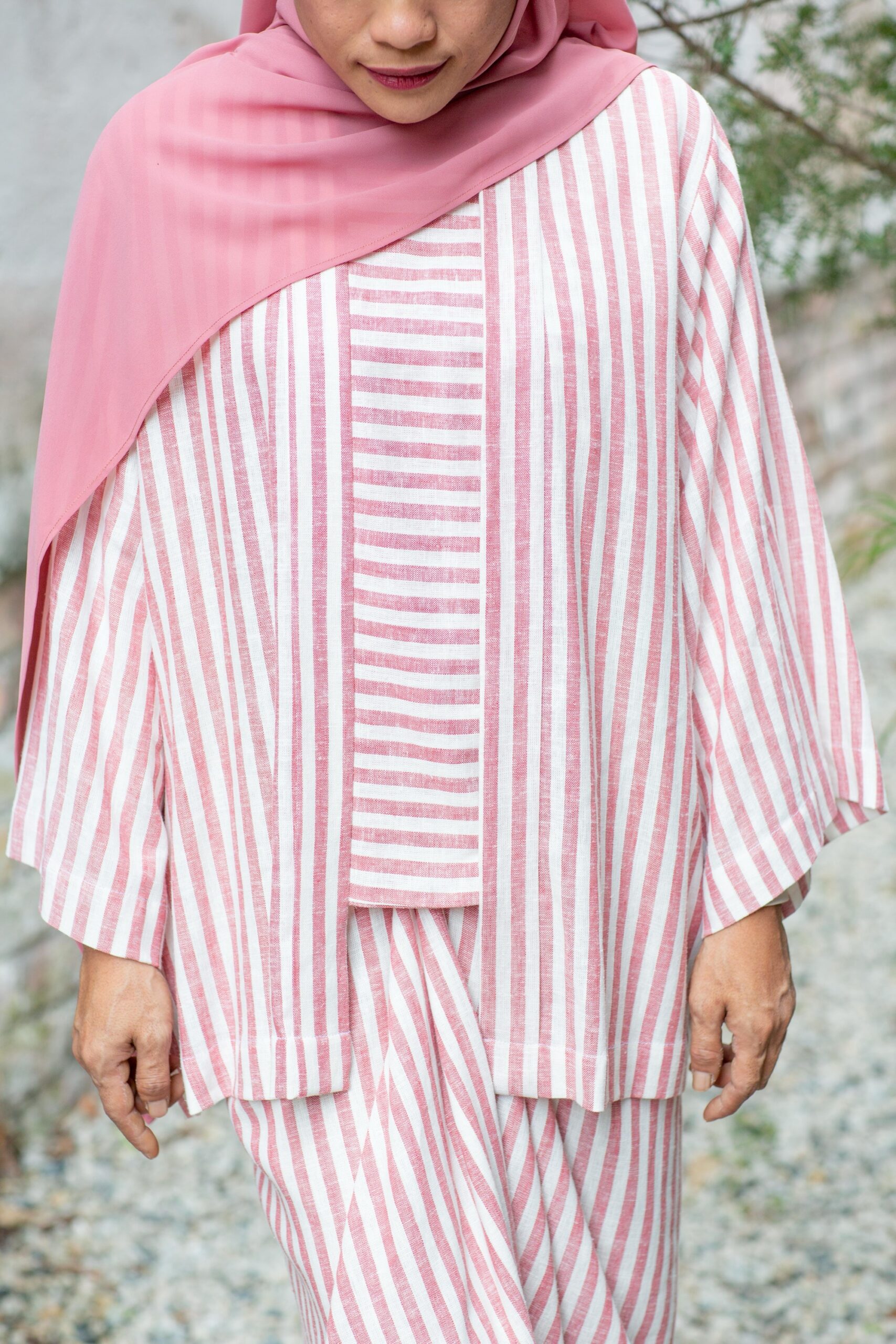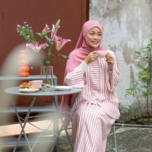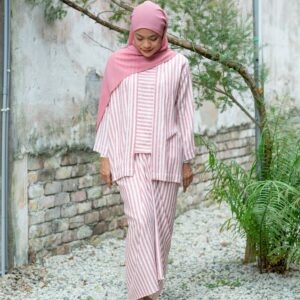 White and light maroon stripes mirror the gentle bloom of a Mawar, subtle and timeless.